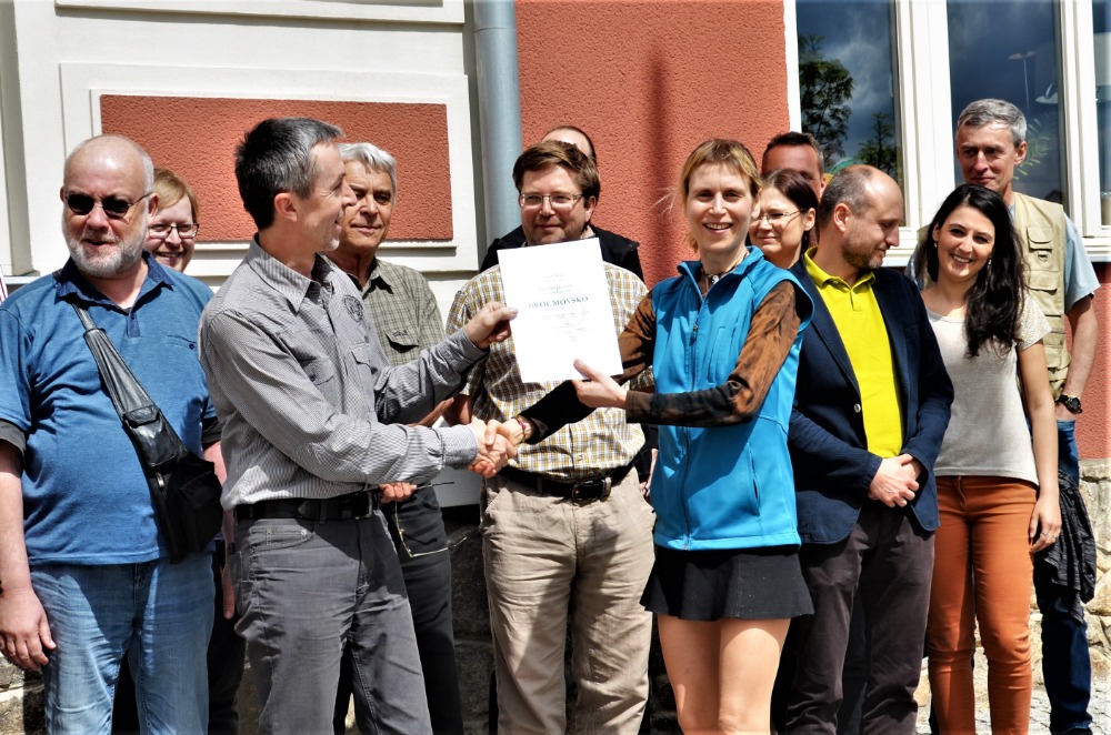 Slavnostním převzetím certifikátu, vydaného Ministerstvem životního prostředí ČR, se Geopark Broumovsko stal oficiálně devátým členem Sítě národních geoparků ČR. Certifikát Národní geopark převzal manažer Geoparku Broumovsko Ing. Stanislav Stařík z rukou předsedkyně Rady národních geoparků Ing. Martiny Páskové, Ph.D. na jarním zasedání Rady národních geoparků v Kašperských Horách dne 25. 4. 2018.