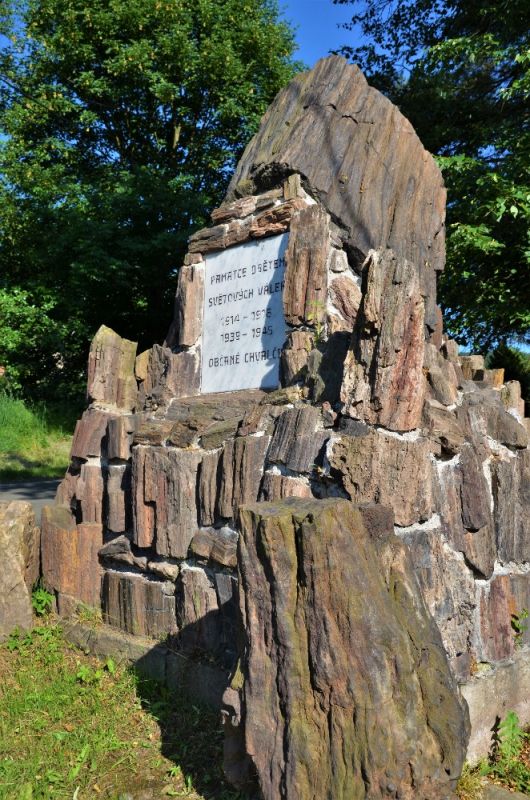 V nedaleké Chvalči stojí hned u silnice ve směru do Radvanic jeden z mnoha pomníků, které jsou ve zdejším kraji postavené z místních araukaritů - prokřemenělých kmenů prvohorních stromů.