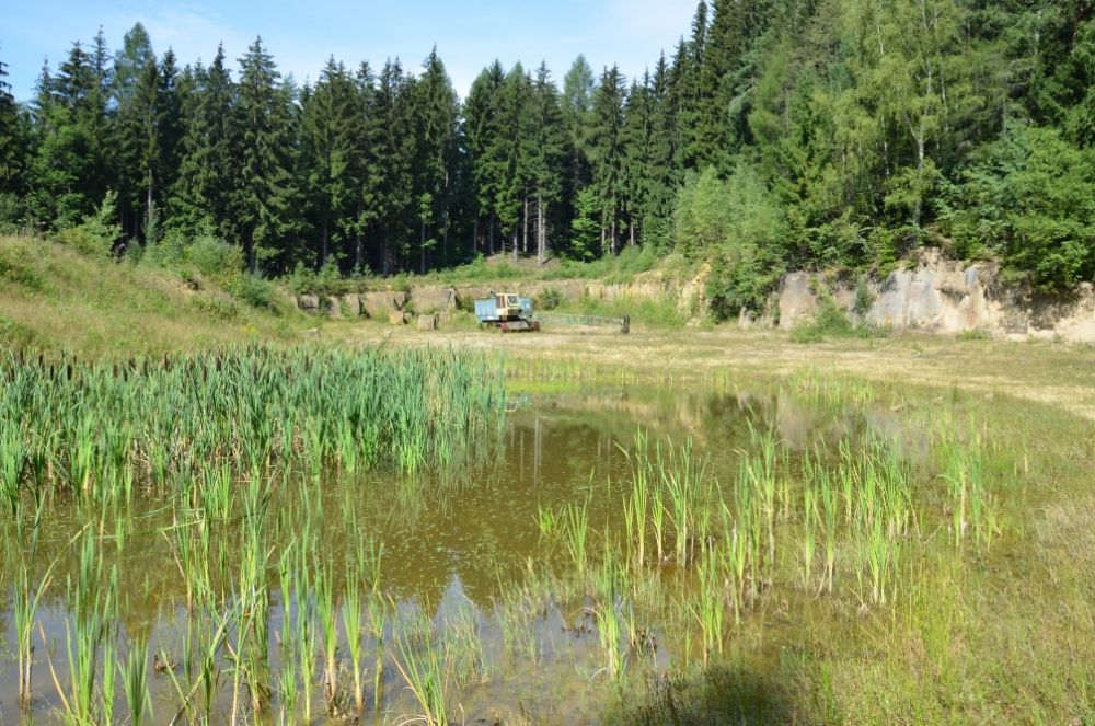 Pramenní vývěr vytváří v části Posledního lomu mělké zarůstající jezírko.