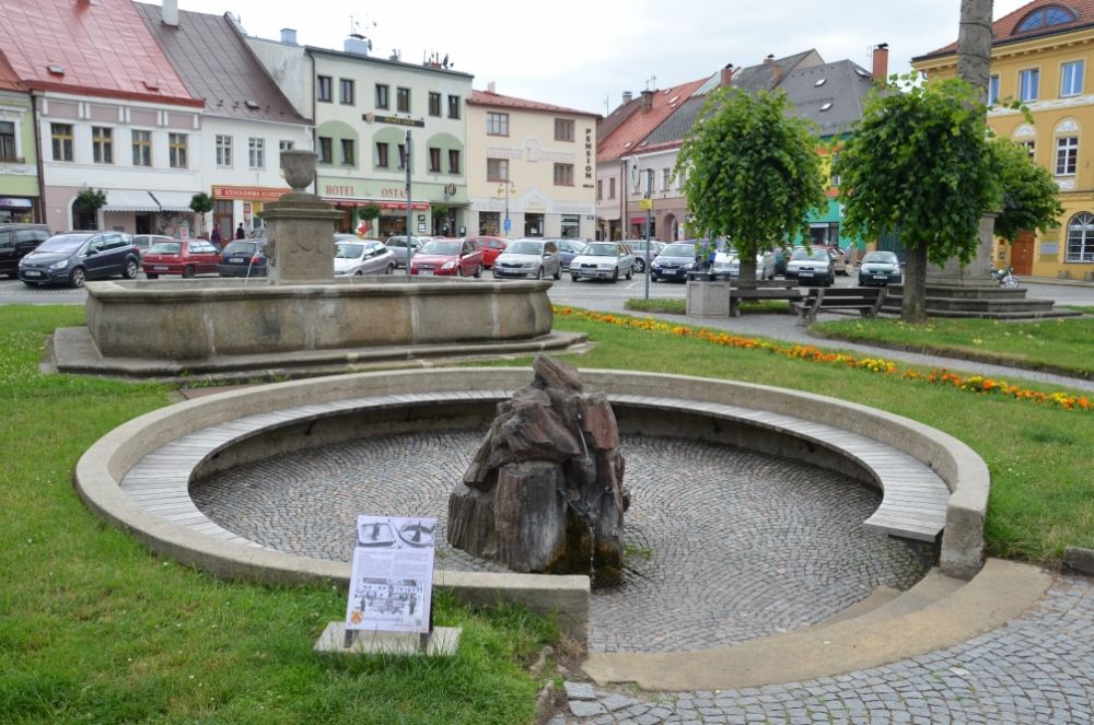 Empírová kašna, stojící v těsném sousedství prameníku na místě někdejšího městského pivovaru, pochází z roku 1819. Je dílem místního kameníka Filipa Klemta ze Suchého Dolu, který ji zhotovil podle návrhu projektanta z Vídně. Nápisy na kašně zkomponoval městský písař, bývalý učitel Vincenc Mrnka. Kašna je dnes napájena pomocí čerpadla vodou, která odtéká z vedlejšího pramene „Julinka“.