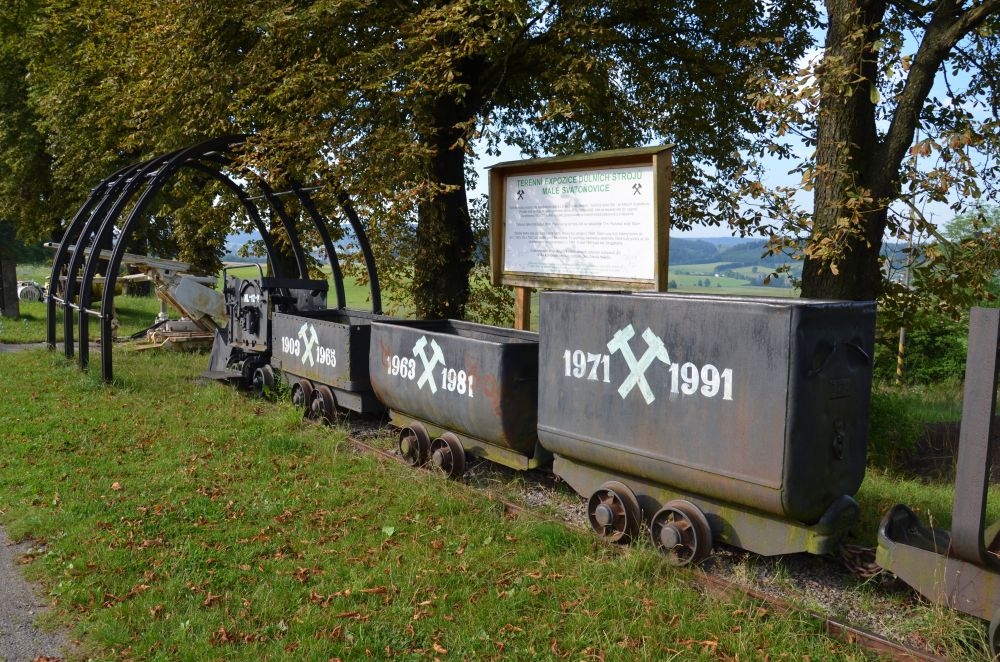 V terénní expozici, umístěné na bývalé úzkokolejné trati z dolu IDA do Malých Svatoňovic, si můžete prohlédnout a "osahat" nejpoužívanější důlní stroje a techniku pro těžbu uhlí a ražbu důlních chodeb. Z dopravních prostředků zde uvidíte důlní dieselovou lokomotivu BND-30, důlní vozík pro přepravu osob - tzv. pulman, několik historických typů nákladních vozíků pro přepravu vyrubaného uhlí nebo hlušiny - tzv. huntů, nákladní vozík "klaničák" na přepravu dřevěných fošen a kulatiny na "výdřevu" (dřevěnou výztuž) důlních chodeb. Kolejový důlní bagr (vystavený je zajímavý historický exemplář) a důlní naviják se používají pro nakládání rozvolněné horniny do "huntů" a pro její "vyškrabávání" při ražbě důlních chodeb. Prohlédnout si můžete i hydraulickou důlní výztuž, používanou na uhelném porubu (čelo podzemní chodby, kde se "rube" uhlí z uhelné sloje) pro dočasné zpevnění vyrubaných (vytěžených) prostor proti zřícení stropu, nebo sestavenou část ocelové obloukové výztuže - tzv. hajcmany, používanou pro trvalé vyztužení hlavních důlních chodeb. V expozici samozřejmě nechybí ani hlavní části těžního zařízení - důlní uhelný kombajn a pohon hřeblového dopravníku pro přepravu vyrubaného uhlí od kombajnu.