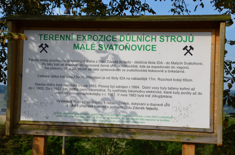 Terénní expozice důlních strojů je instalovaná na bývalé úzkokolejné dráze od štoly IDA do Malých Svatoňovic. Mezi exponáty nechybí důlní dieselová lokomotiva BND-30 ani důlní vozík pro přepravu horníků - pulman.
