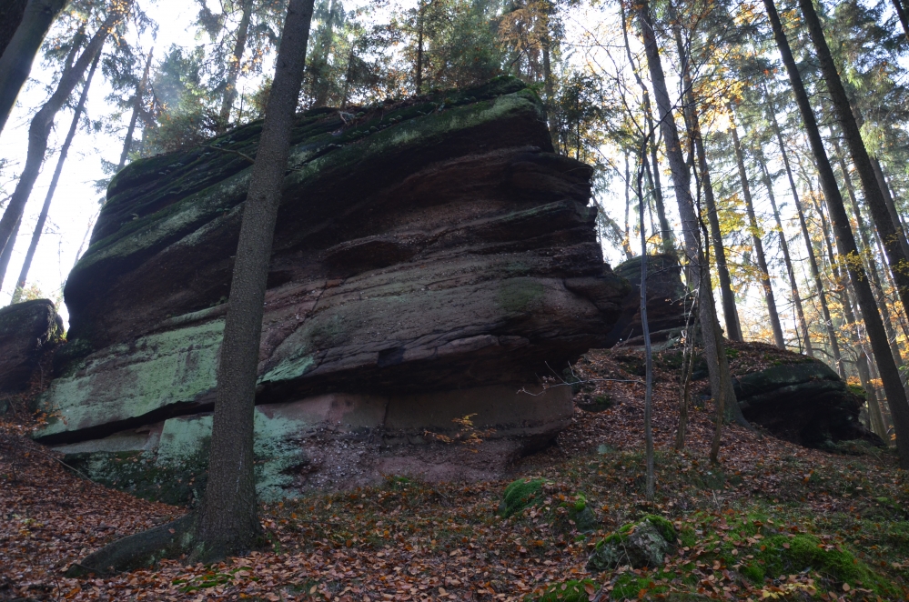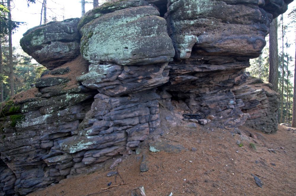 Spodní část masívu s hustší frekvencí vrstevních spár je ve střední části této partie narušena nevhodným vylamováním araukaritů (prokřemenělých zbytků karbonských dřevin).