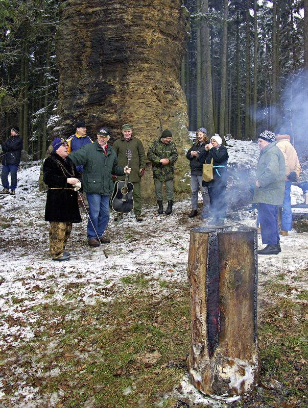 Snímek dokládající místní oblíbenost Čertovy skály jako místa příležitostných setkávání. Jednou z takových akcí je tradiční a velmi veselé Novoroční setkání u Čertovy skály.