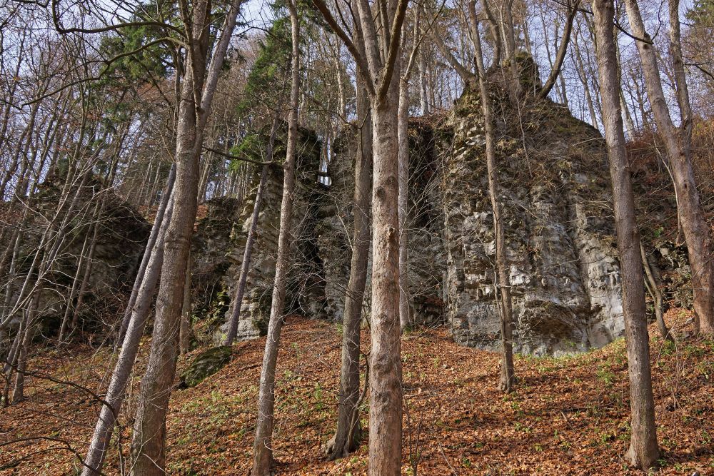 Rozvětralý a z povrchu stěn skalních srubů odpadlý horninový materiál tvoří úpatní akumulace balvanů i drobnějšího materiálu. V těchto akumulacích se vlivem specifického mikroklimatu daného zdejší jižní expozicí nacházejí druhotně vytvářené vápnité bradavičnaté povlaky na balvanité suti, případně i jako volné vápnité konkrece. V horninovém profilu prostřídávaných slínovců, prachovců a spongilitických pískovců křídového období středního turonu se rovněž nacházejí fosílie, většinou úlomkovité zbytky mořských živočichů i fukoidy, které jsou stopami po aktivitách obyvatel mořského dna. Geologicky i paleontologicky zajímavá křídová lokalita je snadněji přístupná jen v její východní části, při úpatí příkrého svahu krytého volnou kamenitou sutí.